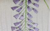 こちらも再考 2020.06.10 白藤の葉っぱ部分の色ですが、生地が金糸が織り込まれていてさらに黄色地 最初に考えていた生地色と全く違う感じを使う事になったので 葉っぱの色も変えます 地模様のある生地だったり、織目が荒かったり密だったりと生地にも色々あります この生地選びで完成時イメージの30%位は締めるのではないかと思っています 私にとっては生地選びは刺繡を刺すのに最重要事項なんです なので、手持ち生地が少ないのに買い出しに行けないのはつらい