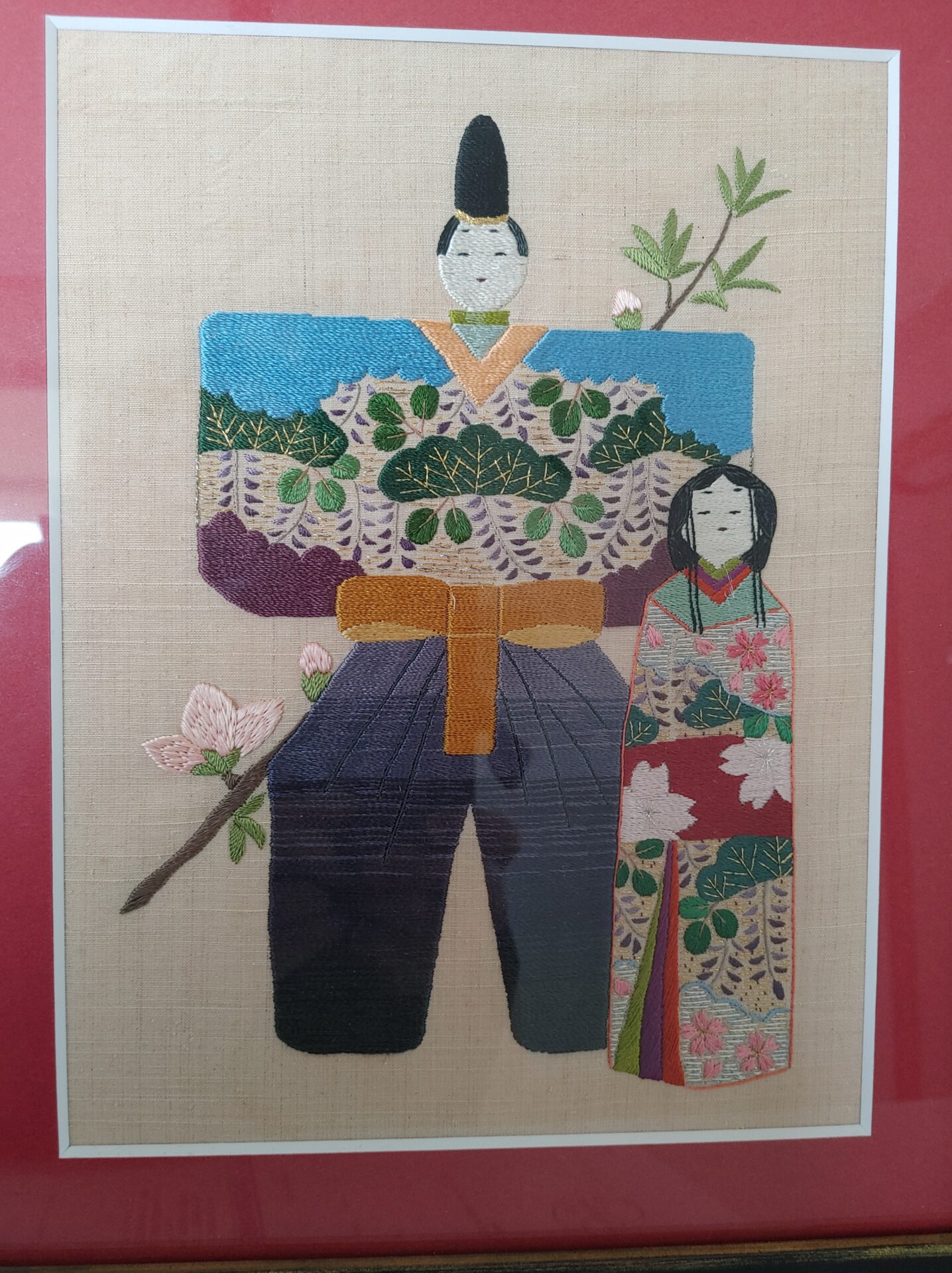 ひな祭り 2026.03.02 何をするわけではありませんが、これを飾ります。 自分で言うのも何ですが、刺しが綺麗! 大昔、目も指も思い通りに動いていた頃の作品です。 日本刺繡人生、生きていればあと20年は刺せるはずですが、ここまで絹糸の美しさを表現出来るか? まだまだ修行は続きます。