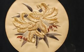 百合花びらの糸の流れるような刺し方向が美しい。